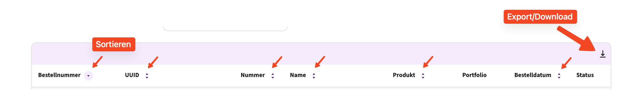- Auch die Übersicht der Enreach Contact Bestellungen kann nun spaltenweise sortiert und exportiert werden OFE-3139