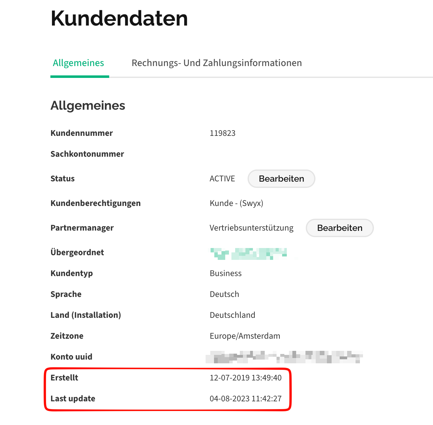 - Operator zeigt bei den Kundenaccounts an wann es angelegt wurde und wann es letztmalig verändert wurde. Diese Information kann auch in den Kundenexport aufgenommen werden PSO-6505
