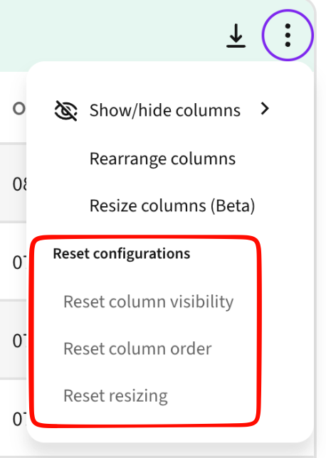 - Veränderte Einstellungen in Tabellenübersichten können wieder auf die Standard-Einstellungen zurückgesetzt werden OFE-3279